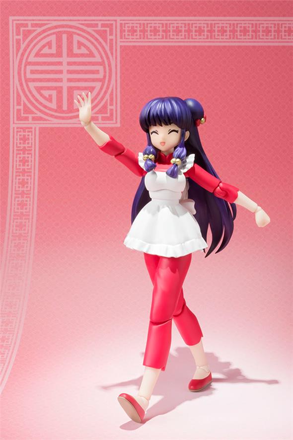 Bandai presenta la seconda SH Figuarts dedicata a "Ranma 1/2": dopo Ranma Saotome ecco arrivare Shampoo! L`action figure è molto dettagliata e dispone di numerose articolazioni che garantiscono un`ottima posabilità. Nella scatola troverete anche: mani e volti opzionali, uno stand display, un omakochi, una scodella per il ramen e il gatto.